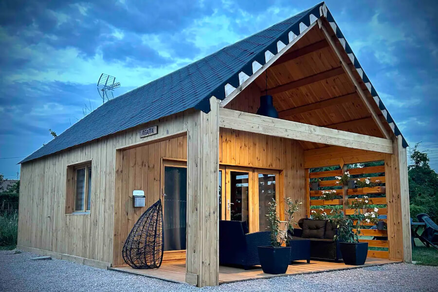 Die Freude darüber, eine zunehmend attraktive Region und neue Möglichkeiten der Arbeit im Homeoffice zu entdecken, hat die fünfköpfige Familie dazu bewogen, ihre Immobilie zu verkaufen und ein Grundstück für ein besonderes Projekt zu erwerben. "Les Chalets du Parc" wurde im April 2023 nach vier Monaten Vorbereitungszeit eröffnet, in der das Blockbohlenhaus AGATA und einige Camping-Pods der Version BRETA aufgebaut und eingerichtet wurden. Scrollen Sie nach unten, um die Bilder und Designs zu sehen, die nach Ansicht der Eigentümerin Laura eine perfekte Harmonie mit der Umgebung schaffen. Jedes Modell verfügt über Parkplätze für die Reisenden und es gibt auch einen Gemeinschaftsgarten, um den Geist des Landlebens zu ent… (Mehr) -