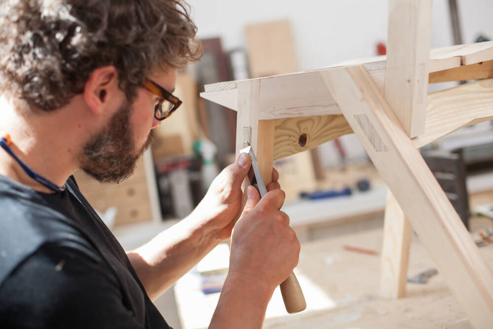 Äußerlich bekommt das leichte Element Holz dadurch einen schweren, soliden und sicheren Eindruck.